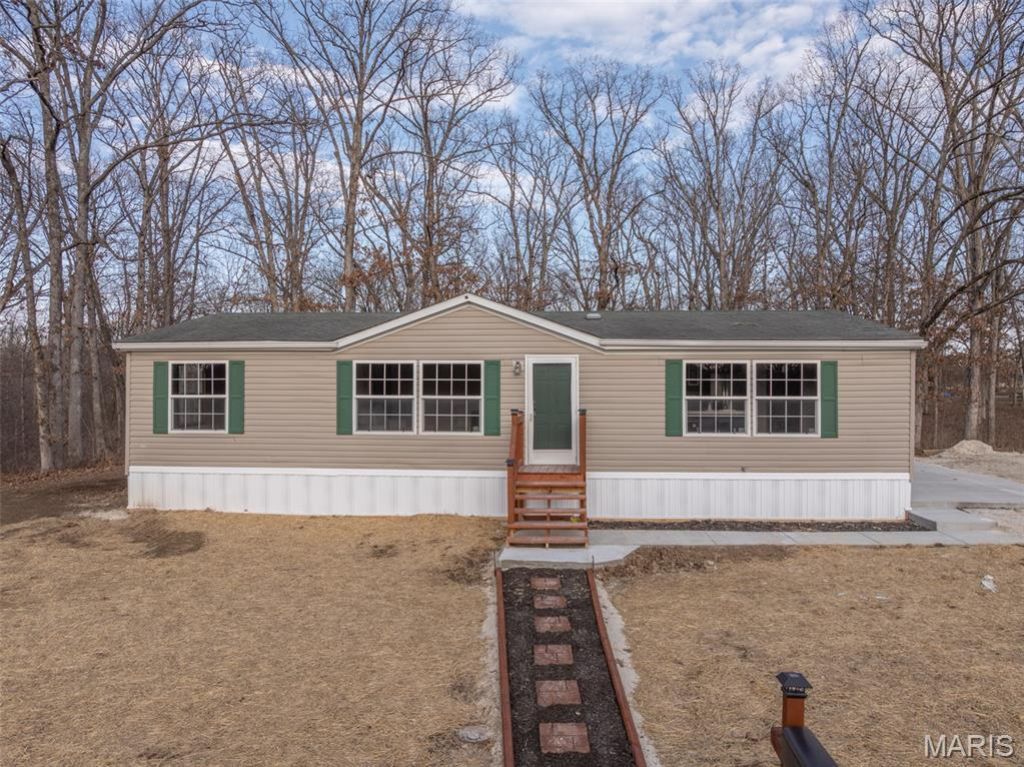 Own your own dirt and say goodbye to rent and lot rent forever! Permanently affixed manufactured home on a large .40 acre lot. Seller just had a new shingles installed on the roof for the new buyers. This has been updated on the interior, 3 bedrooms 2 bathrooms, lovely kitchen and living room. Large living room has an electric fireplace. Primary bedroom has massive ensuite with new vanity and nice layout. Main floor laundry area with kitchen is open to dining area and also enjoys a lot of light. Public water and sewer. Backs to trees and has off road parking, a small deck and patio. Don't miss out on owning your own home!